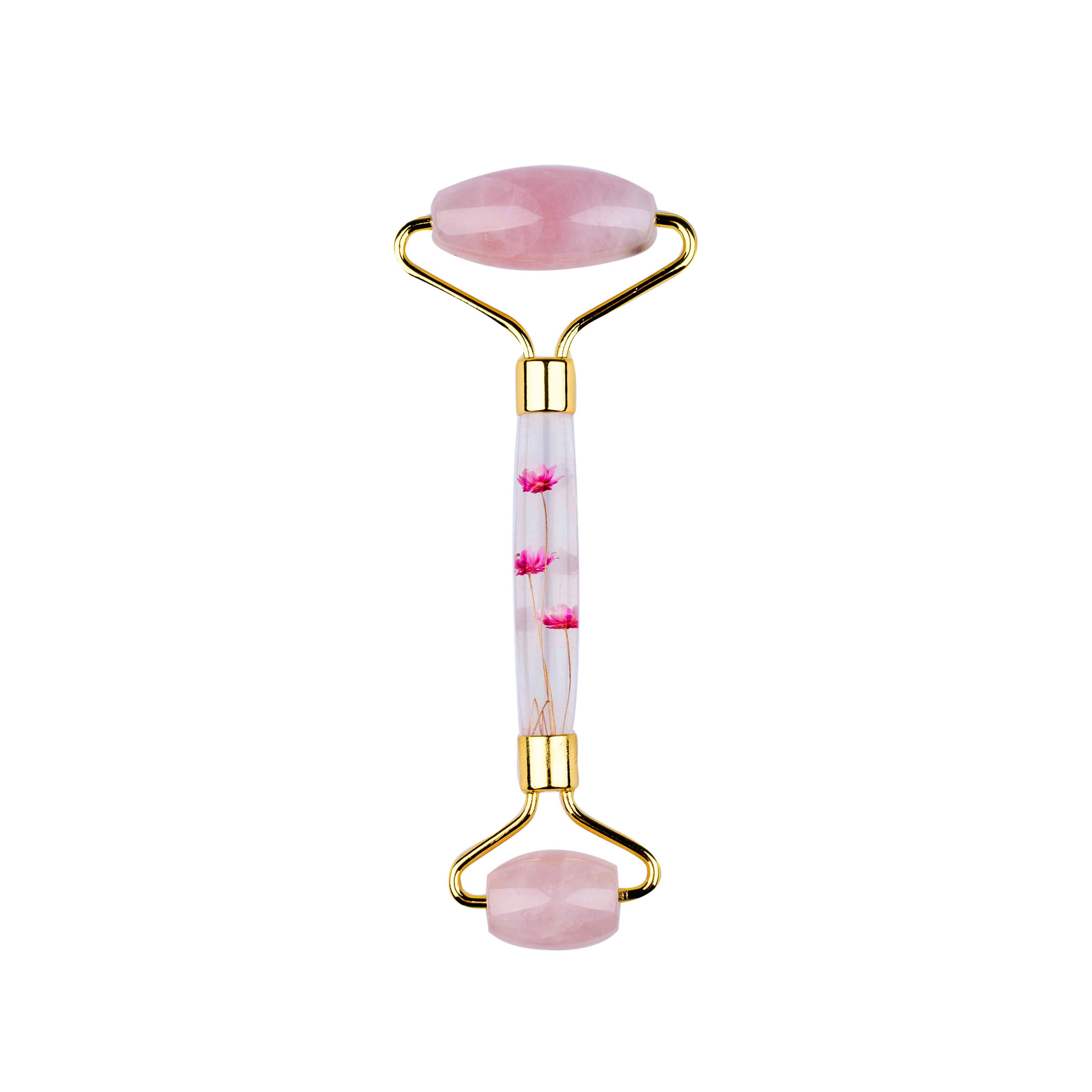 Basics Light Pink Jade Facial Roller Flower Handle
