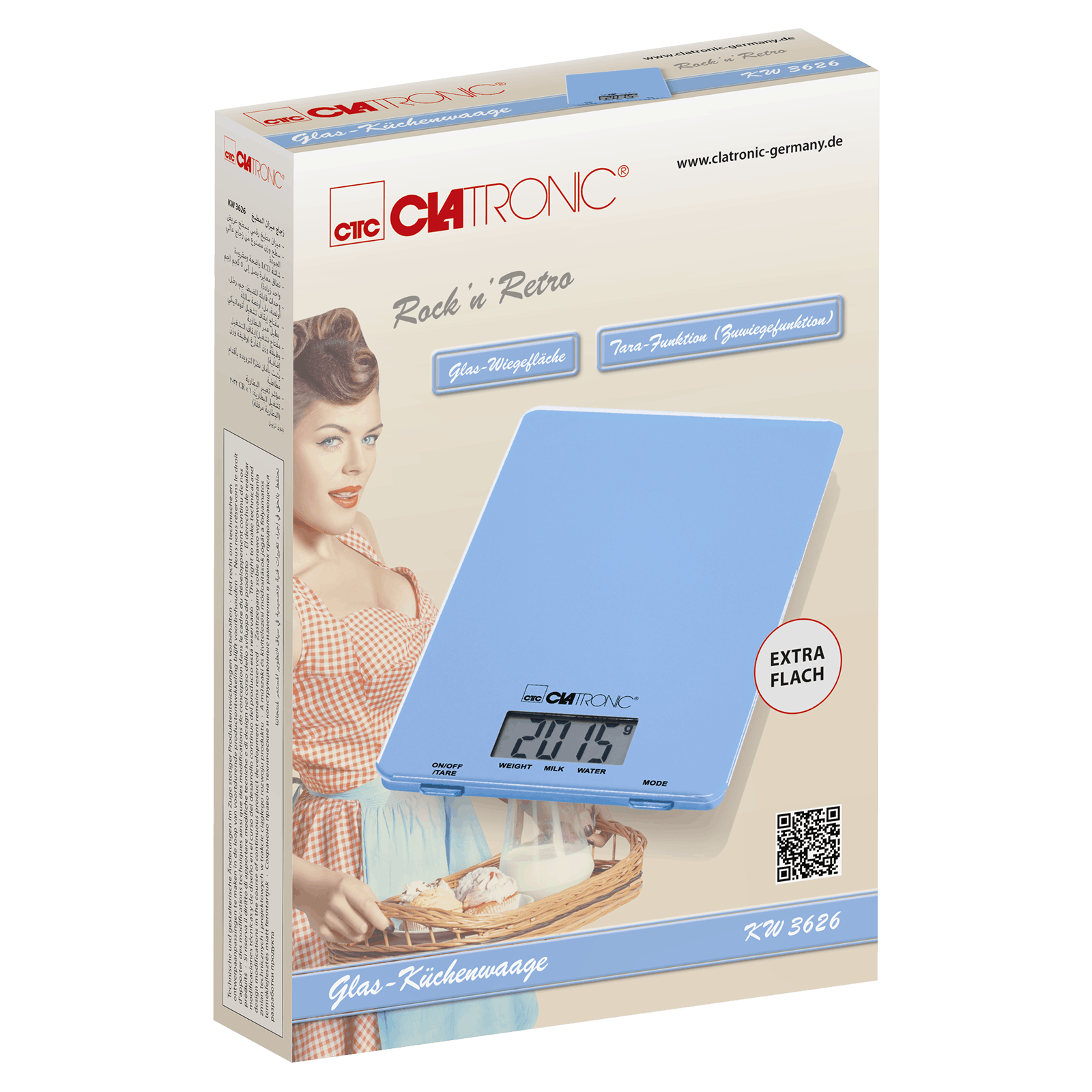 Clatronicin KW3626-keittiövaaka sininen on kätevä ja tyylikäs keittiövaaka, joka tekee ruoanlaitosta ja leipomisesta entistä mukavampaa.