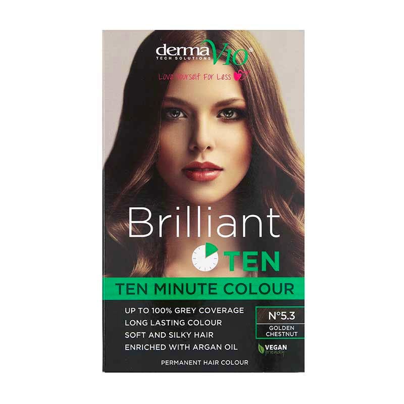 DermaV10:n Brilliant Ten Hair Colour 5.3 Golden Chestnut on upea tuote, joka antaa sinulle mahdollisuuden saavuttaa kauniin ja luonnollisen hiusvärin.