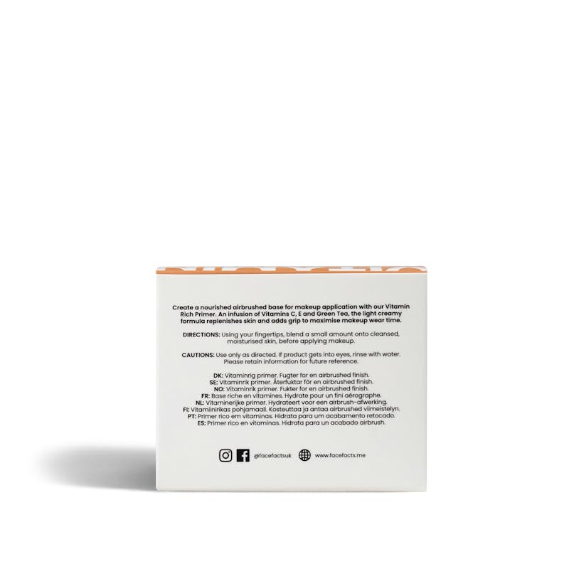 Face Factsin Vitamin Rich Skin Base Primer on monikäyttöinen pohjustustuote, joka parantaa meikkirutiiniasi luomalla tasaisen ja sileän pohjan meikkivoiteen levitykselle.