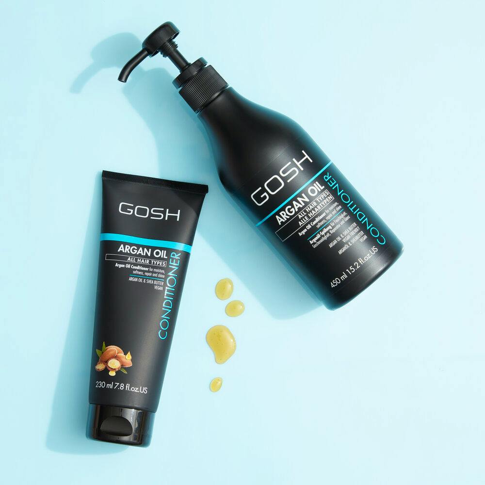 GOSH Argan Oil Conditioner on pehmentävä hiustenhoitoaine, joka sisältää luonnollista arganöljyä ja sheavoita.