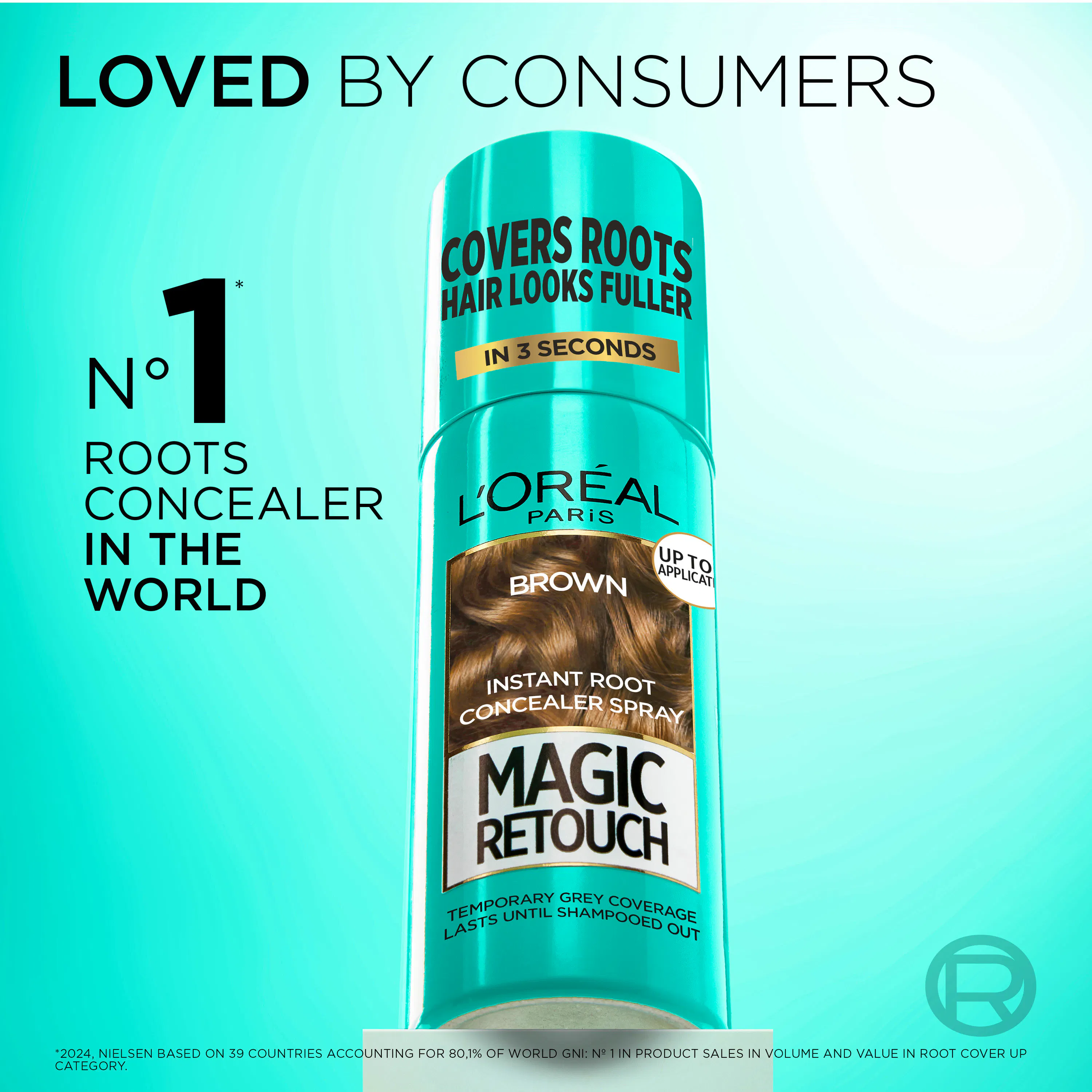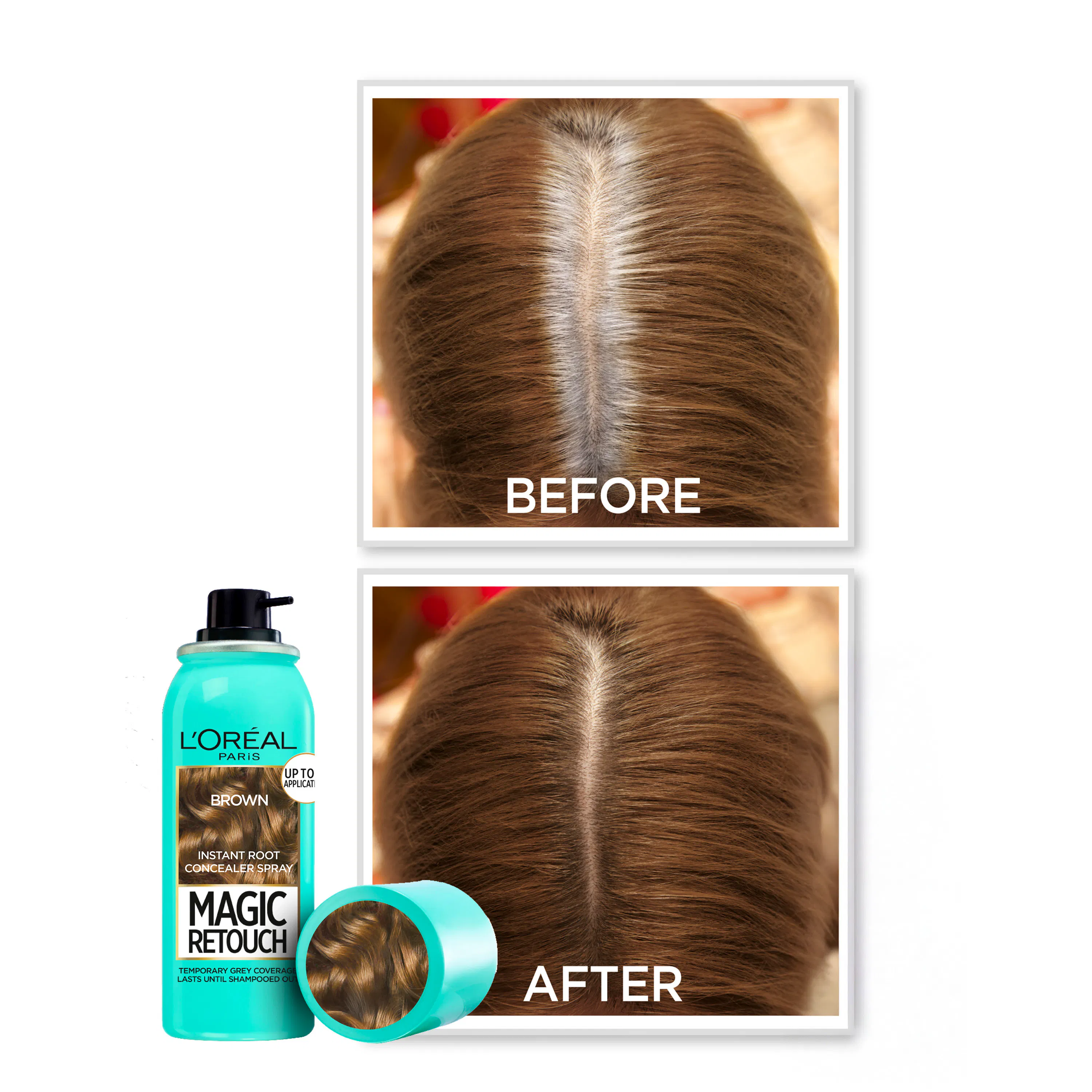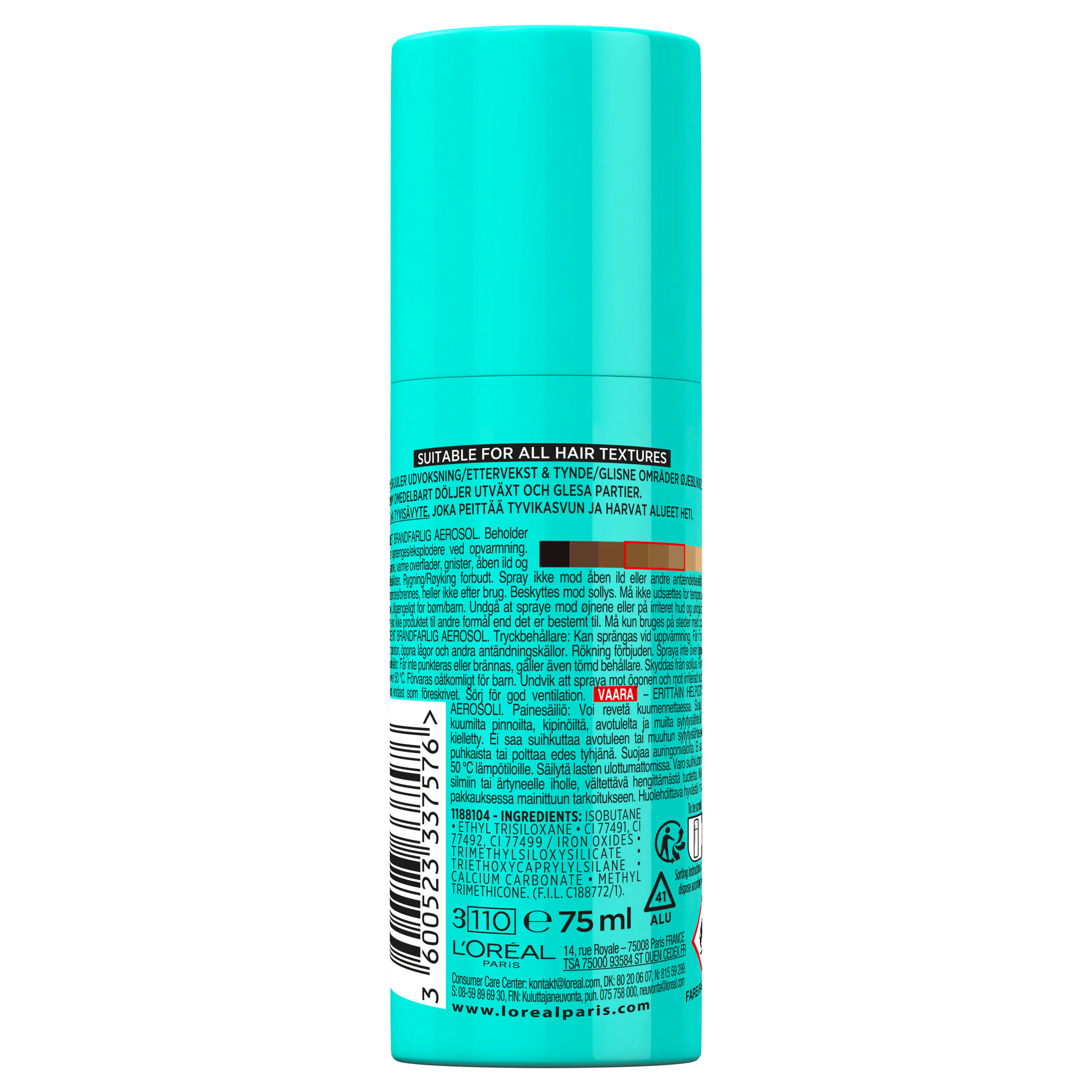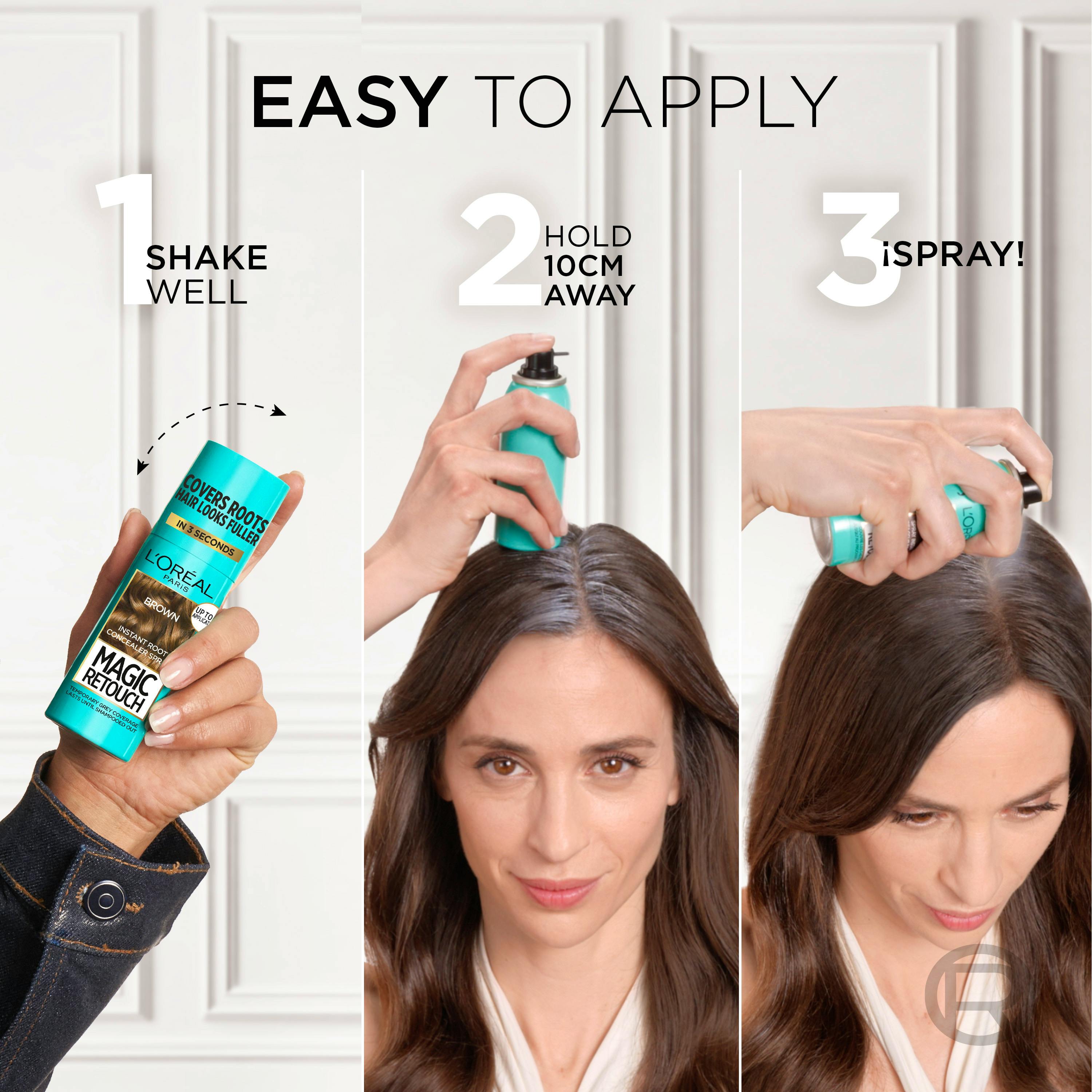 - Tyvikasvun peittävä suihke, joka sopii mahonginruskeille hiussävyille.