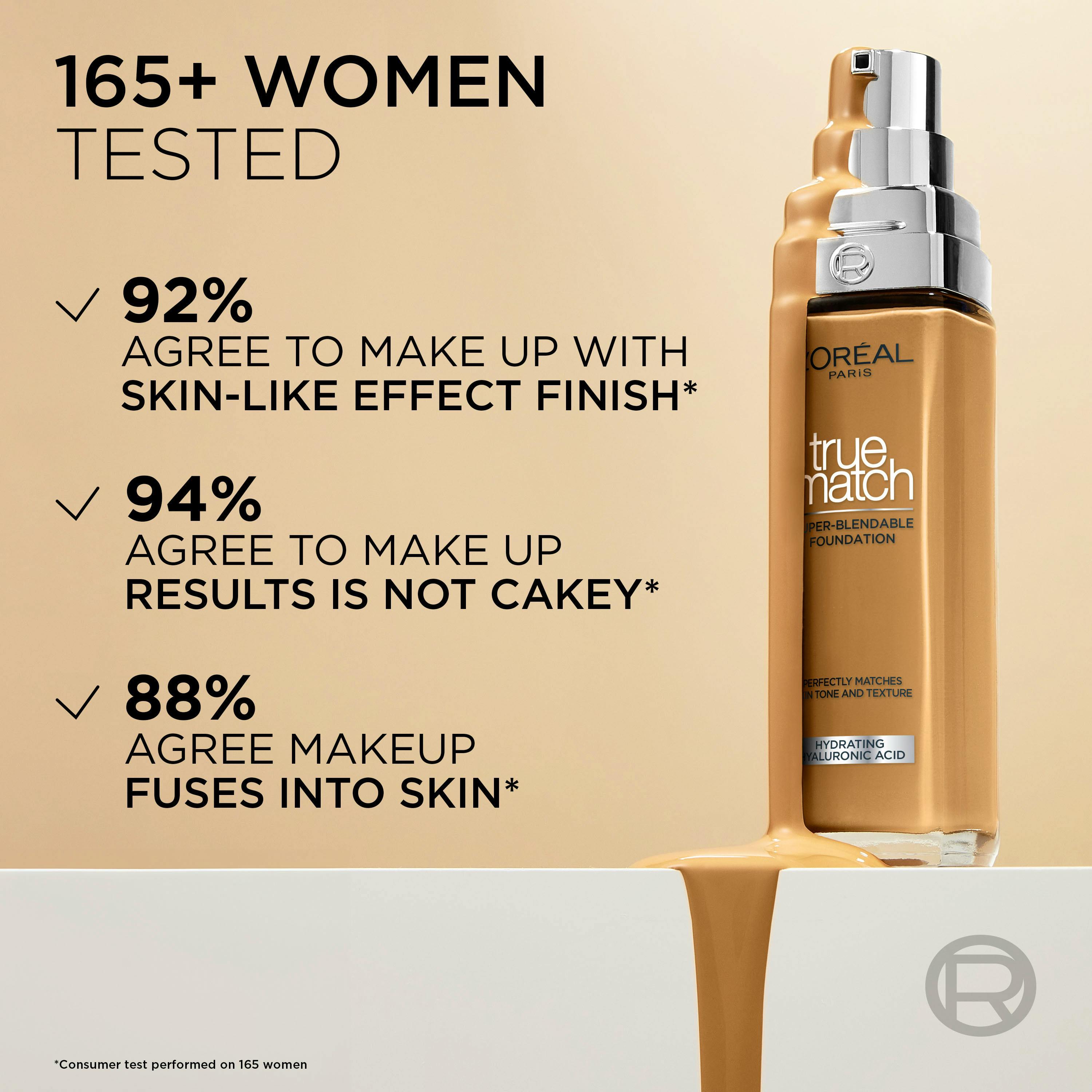 Löydä itsellesi sopivin L'Oréal Paris True Match Super-Blendable -meikkivoidesävysi. Koostumus on erittäin helppo häivyttää, se sulautuu saumattomasti ihosi sävyyn ja tekstuuriin ja antaa kauniin, luonnolliselta näyttävän lopputuloksen. Kevyt koostumus antaa upean peittävyyden ja luonnolliselta näyttävän, heleän lopputuloksen ilman kakkumaista vaikutelmaa. Kosteuttava hyaluronihappoa sisältävä koostumus antaa kosteutusta 24 tunnin ajan*.