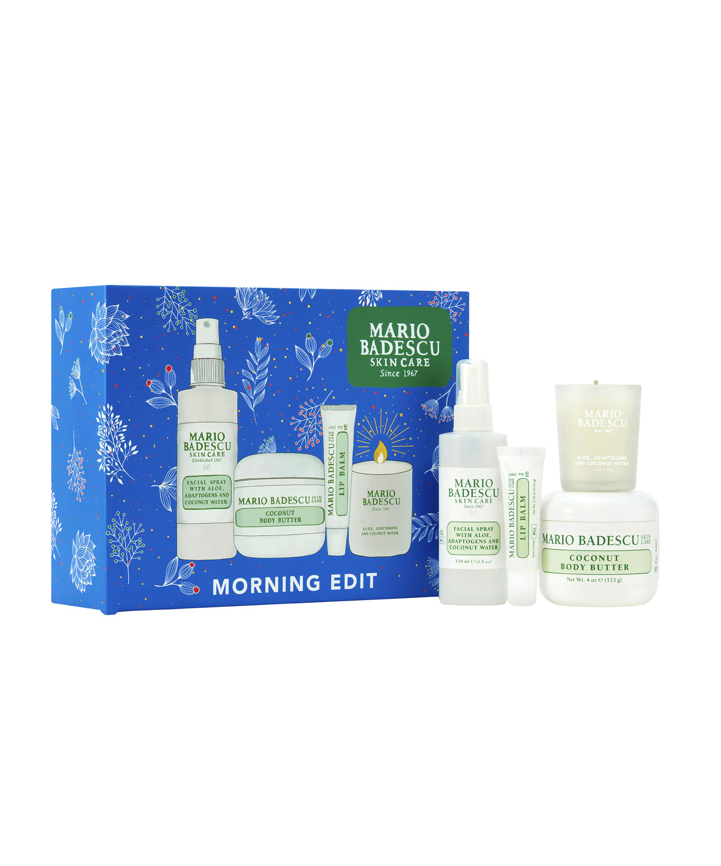 Mario Badescun Coconut Morning Kit on täydellinen lahjapakkaus aloittamaan päivä raikkaalla ja kosteutetulla iholla.