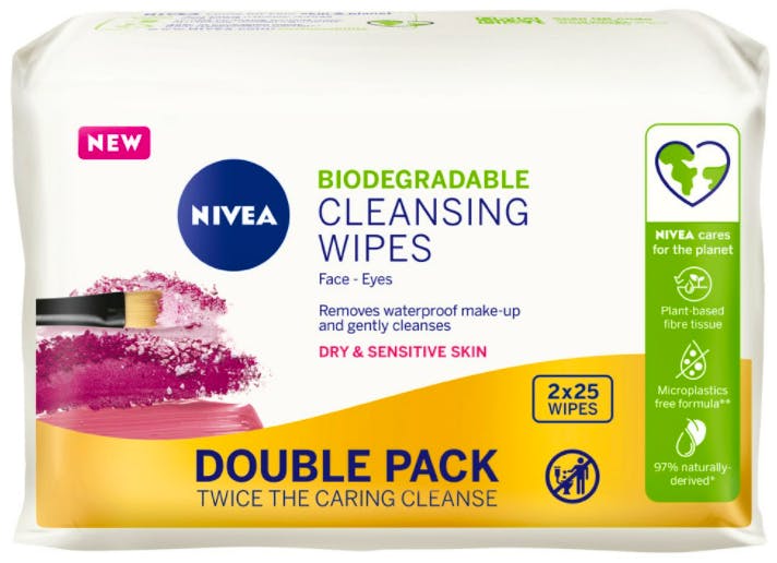 NIVEA 3-in-1 Gentle Cleansing Wipes 2 Pack 2 x 25 kpl