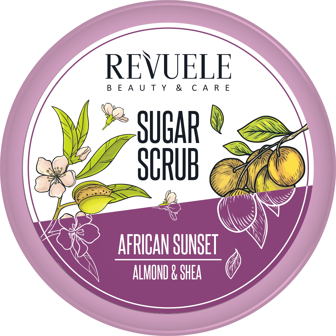 African Sunset Almond & Shea Sugar Scrub on upea vartalokuorinta Revuele-merkiltä.
