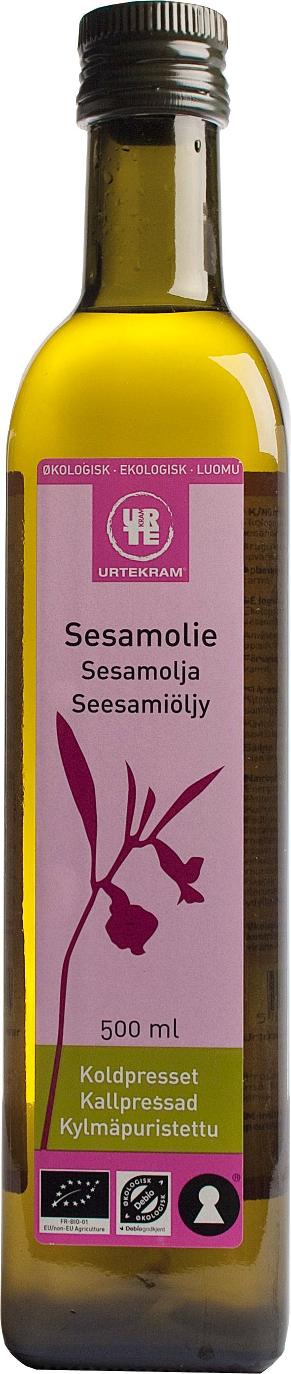 Urtekram kylmäpuristettu seesamiöljy Luomu Öljy 500 ml.